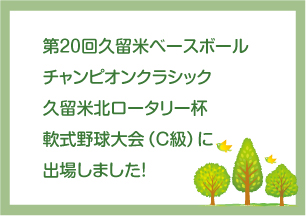 第20回久留米ベースボールチャンピオンクラシック 久留米北ロータリー杯軟式野球大会(C級)に出場しました!